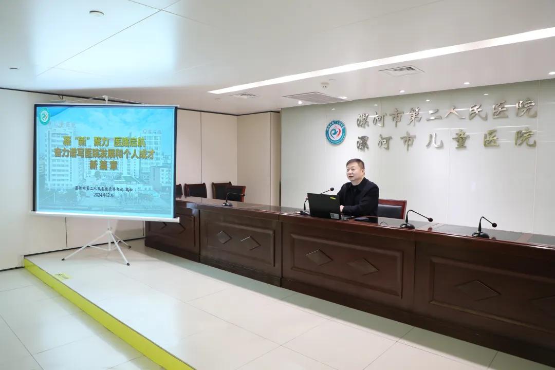 黨委書記魏松以《凝“新”聚力 “醫(yī)”路啟航 奮力譜寫醫(yī)院發(fā)展和個(gè)人成才新篇章》為題,從醫(yī)院的發(fā)展歷程、學(xué)科建設(shè)以及未來期望等方面為新入職人員上了精彩的第一課。