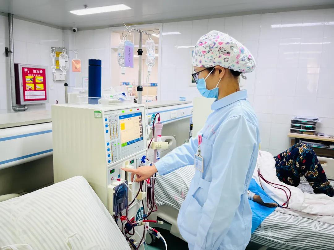 血液凈化室是一個(gè)安靜的地方。透析機(jī)發(fā)出的“嘀嗒”聲和患者的呼吸聲成為這里獨(dú)特的旋律。每天早上7點(diǎn),我會(huì)準(zhǔn)時(shí)到崗,檢查機(jī)器、配制抗凝劑等,做好患者上機(jī)前的準(zhǔn)備工作;透析過(guò)程中,認(rèn)真監(jiān)測(cè)患者生命體征……對(duì)每一個(gè)步驟都嚴(yán)謹(jǐn)細(xì)致。在這個(gè)沒(méi)有硝煙的戰(zhàn)場(chǎng)上,我時(shí)刻保持警惕,為患者健康盡心盡力。