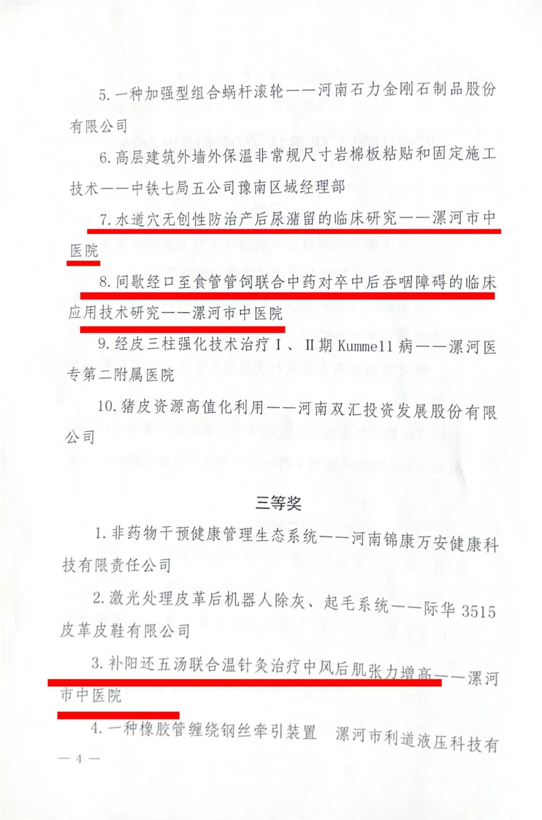 河市中醫院3個項目獲得漯河市職工優秀技術創新成果獎項