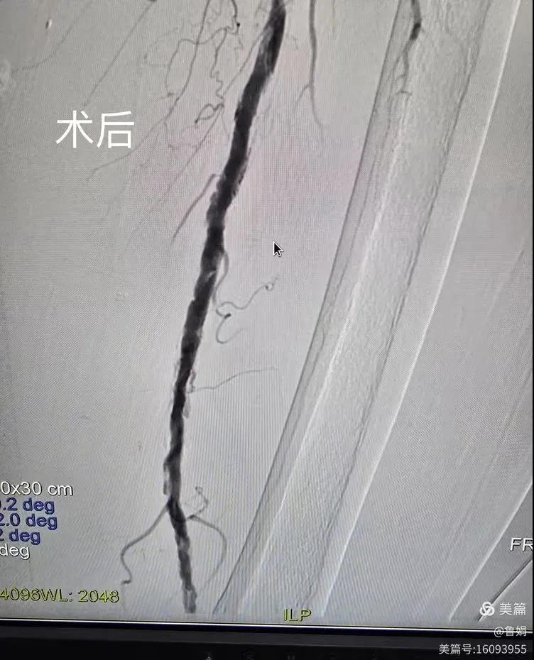 據悉,該患者,女,73歲,下肢動脈硬化閉塞癥,“以靜息痛,間歇性跛行”入院,CTA評估:股淺動脈,腘動脈間斷性多段重度狹窄,外二科血管外科團隊根據患者病情,結合檢查結果,經過科室會診后,決定對該病人行介入治療。手術由周創業副主任與北大一院血管外科專家郭宏杰教授聯合開展,對股淺動脈,腘動脈重度閉塞段行血管開通+藥涂球囊擴張成形,術后狹窄明顯緩解,血流恢復!