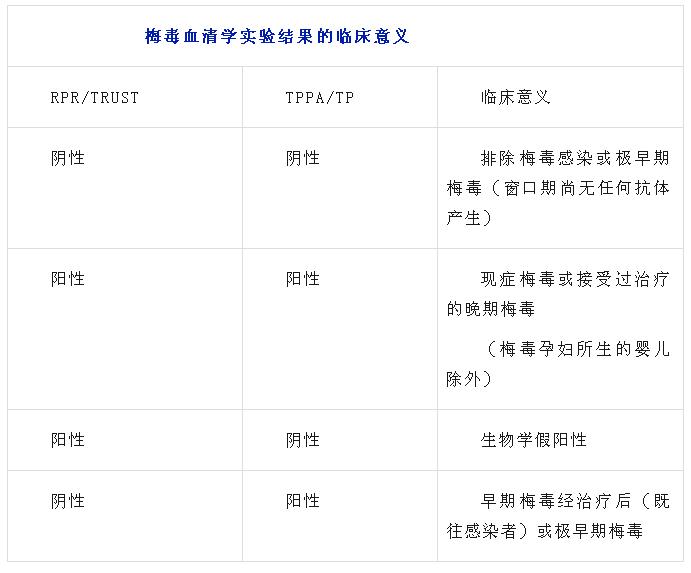 所以說如果出現梅毒特異性抗體(TP或TPPA)陽性,需要進一步檢測梅毒非特異性抗體(RPR或TRUST)的檢查和滴度檢查,如果兩種結果均為陽性,結合臨床癥狀或是流行病學史等可確診為現癥梅毒,需要進行規范的抗梅毒治療。