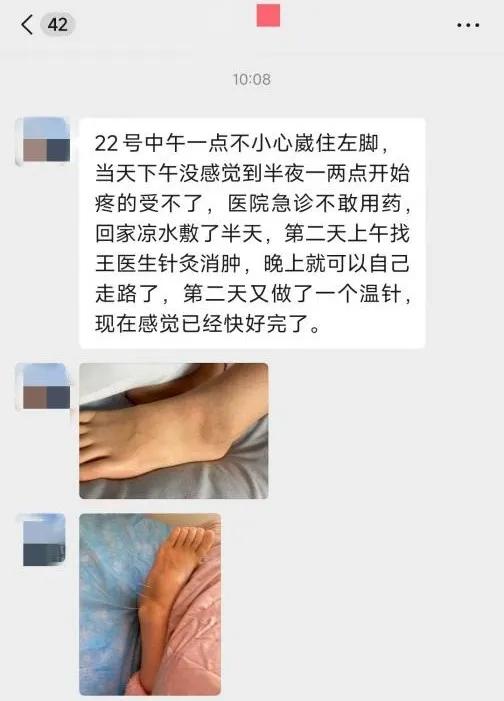 近日,一位懷有3個月身孕的孕媽媽下樓梯時不慎急性腳扭傷,因孕早期無法行放射檢查,無法口服止痛藥物及外用活血化瘀的敷貼,建議觀察?;颊咴谔弁措y忍的情況下,求助漯河醫專二附院(漯河市骨科醫院、漯河市立醫院)婦產科中醫婦科門診,副主任中醫師王偉偉立即給與普通針刺,旨在消腫止痛,第二日復診時,患者已經可以擺脫輪椅,自行走到診室?;颊吒屑さ卣f:“王醫生的針真厲害!”二診又給予溫針灸治療,旨在化瘀通絡。隨訪時,患者已經基本痊愈。