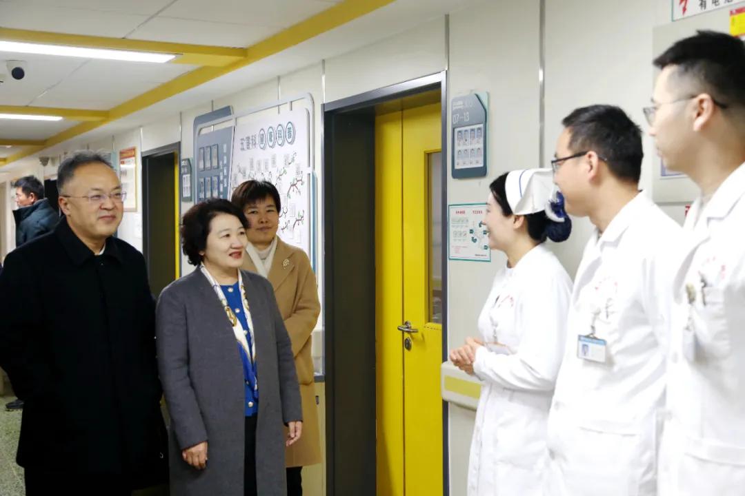 隨后張祎捷一行來到住院病區,對醫院取得的成績給予了充分肯定,鼓勵大家在新的一年里繼續努力,不斷提高醫療技術水平,為患者提供更加優質的醫療服務。同時,領導們還關心地詢問了醫護人員的工作和生活情況,希望他們在工作之余能夠照顧好自己和家人,并送上節日的慰問品。