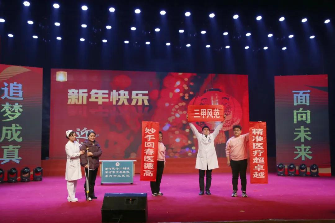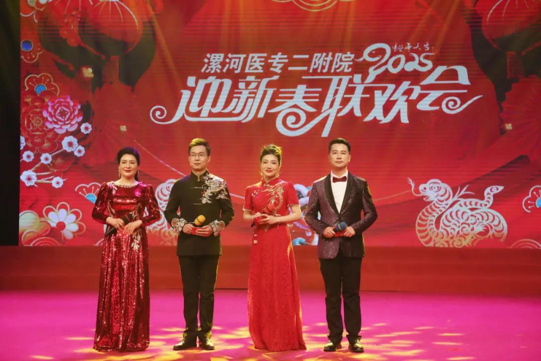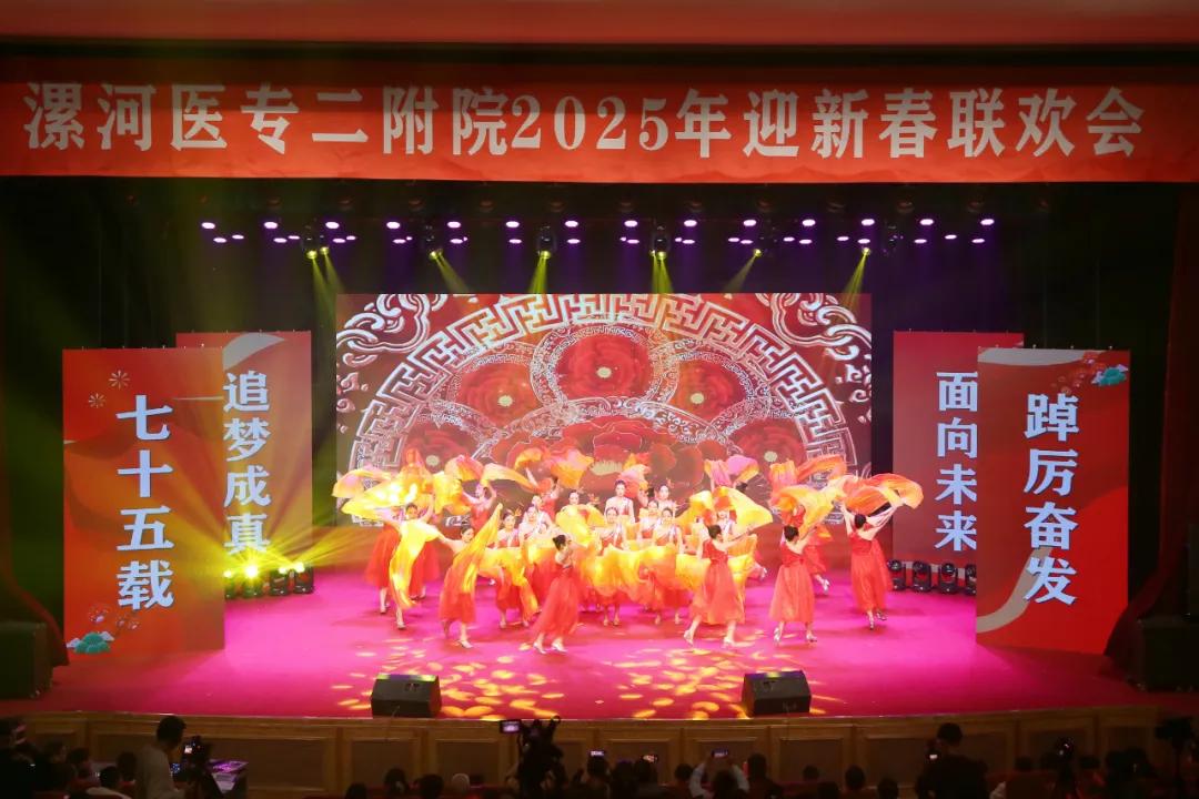 為慶祝漯河醫專二附院(漯河市骨科醫院、漯河市立醫院)建院七十五周年,1月21日,漯河醫專二附院2025年迎新春聯歡會在漯河市科教文化藝術中心大劇院隆重舉行。漯河醫學高等專科學校校長張祎捷,市衛生健康委副主任于宏,市醫保局副局長于懷江,漯河醫專黨委副書記邊曉峰,市科協副主席臧明濤,市總工會四級調研員李敏,漯河醫專紀委書記王蕾,漯河醫專副校長張福華、馬永超,漯河醫專二附院黨委書記柴運洪,漯河醫專二附院院長王齊超,漯河醫專黨辦主任楊曉宇,漯河醫專行政辦主任申耀強,漯河醫專團委書記周沛,市衛健委醫政科科長胡艷麗,市總工會文教衛工會主任谷賀衛,郾城區龍塔街道辦事處主任李瑩,郾城區巴山路居委會書記王梅芝,郾城區伊坪小學校長徐偉濤等出席。