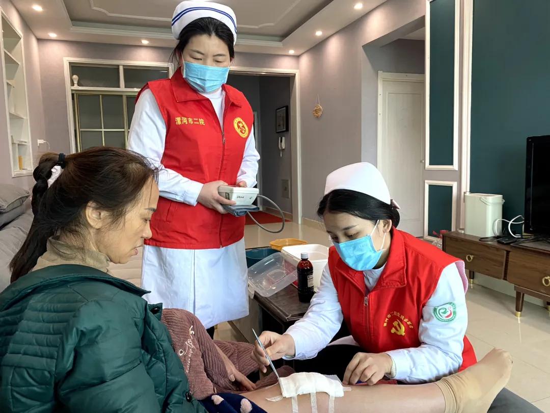 家住漯河市源匯區的陳阿姨于2025年1月份在漯河市二院顯微外科、燒傷整形科因下肢外傷做了手術,術后需要絕對臥床,陳阿姨出院后,因為下樓不便,每次傷口換藥都成了大問題。陳阿姨想到出院時,護士交代的“豫健護理到家”服務,手機上預約后就能足不出戶護理到家。