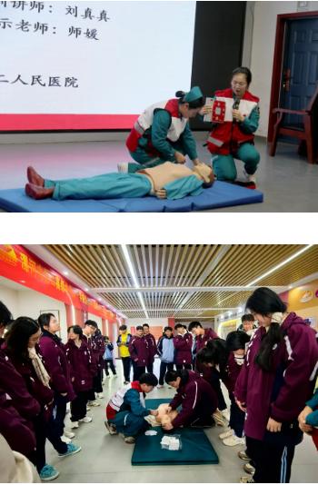 揭牌儀式后,市二院的“急救課堂”精彩開講。心肺復蘇培訓現場,他們以精準節奏按壓模擬人,講解著每一個關乎生死的細節:“按壓深度、頻率,這是與死神賽跑的關鍵參數,老師同學們務必牢記。”面對同學們的踴躍提問,醫護人員始終面帶微笑,耐心解答,確保每位同學都能聽懂、學會。