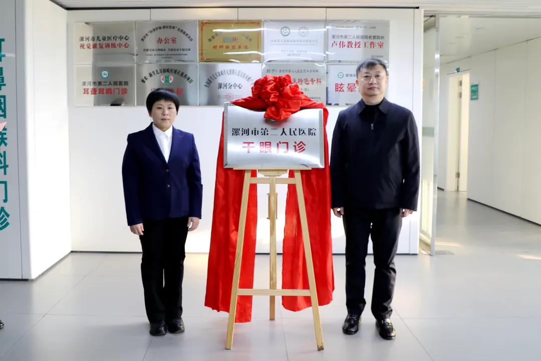 儀式現場,黨委書記魏松與院長胡海英共同為“漯河市第二人民醫院干眼門診”揭牌。