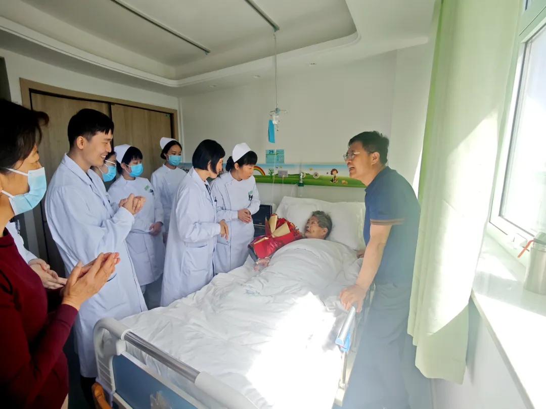 在市二院醫療救治的第一線,不僅有嚴謹專業的診療,更有溫暖真摯的關懷。4月13日上午,市二院呼吸與內分泌科病房里傳來陣陣歡聲笑語,科室醫護人員為90歲的秦阿姨精心準備了一場生日會,用愛與陪伴為老人送上最特別的祝福。
