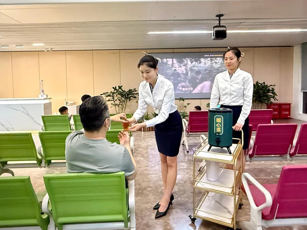 近年來,市二院通過嚴格落實“改善就醫感受 提升患者體驗”六聚焦六提升行動方案、“便民就醫少跑腿”七大舉措和“切實解決群眾就醫急難愁盼問題十條規定”要求等措施,實施“溫暖服務暖心工程”,設立了暖心茉莉花茶、冷熱直飲水機、同時在觀影區配備空氣凈化設備,既能保持涼爽舒適的溫度,又能確保空氣清新,開展健康科普周周講,如高血壓、糖尿病日常管理,腦卒中預防等實用知識等一系列便民服務措施。讓人民群眾在就醫就診中感受到實實在在的獲得感、幸福感、安全感。
