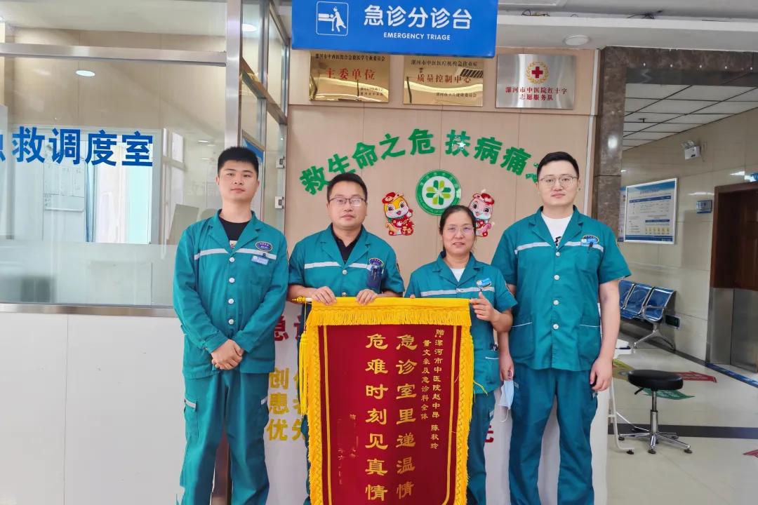 6月19日,患者家屬送來錦旗,對漯河市中醫院急診科值班醫護人員表示感謝!