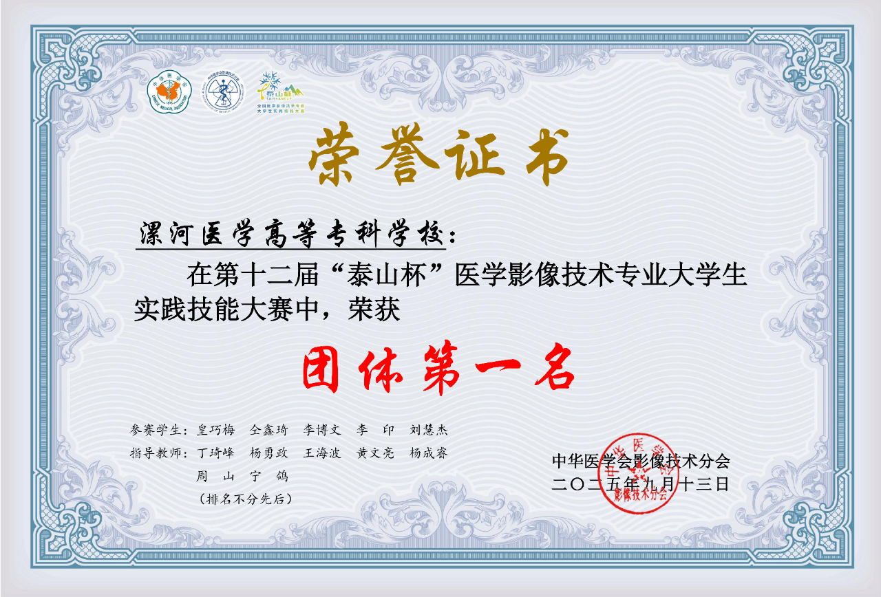 9月12日至14日,2025年第十二屆“泰山杯”全國醫(yī)學(xué)影像技術(shù)專業(yè)大學(xué)生實踐技能大賽暨第八屆醫(yī)學(xué)影像技術(shù)專業(yè)教師教學(xué)創(chuàng)新大賽在山東淄博舉辦。在本次國家級大賽中,漯河醫(yī)專二附院(漯河市骨科醫(yī)院、漯河市立醫(yī)院)在醫(yī)學(xué)影像科周山主任帶領(lǐng)下,在所有學(xué)生實踐技能比賽及教師教學(xué)比賽中均獲優(yōu)異獎項。