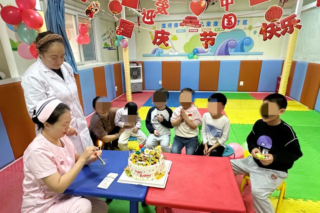 手工環(huán)節(jié)的創(chuàng)意余溫未散,現(xiàn)場又迎來了最溫馨的集體生日會。科室為近期過生日的小壽星們準(zhǔn)備了精美的生日蛋糕。當(dāng)“生日快樂”的歌聲響起,燭光映照著孩子們的笑臉,分享的甜蜜與成長的喜悅在空氣中彌漫。      此次“月滿華誕,情暖雙節(jié)”主題活動,不僅是一次節(jié)日的慶祝,更是一次愛的傳遞和信念的凝聚。漯河市中醫(yī)院兒童康復(fù)科將繼續(xù)用專業(yè)與愛心,守護(hù)每一位孩子的成長,陪伴他們走向更燦爛的明天。(兒   康  王雨欣)