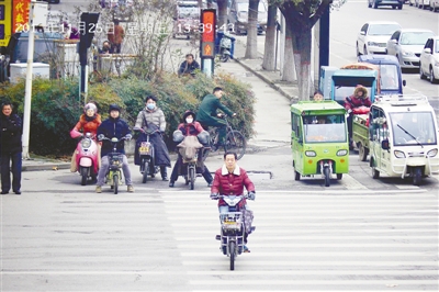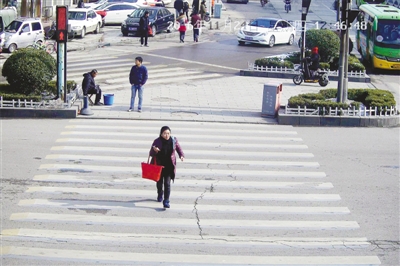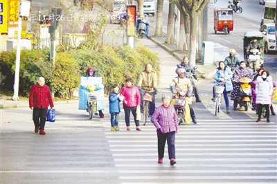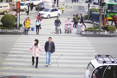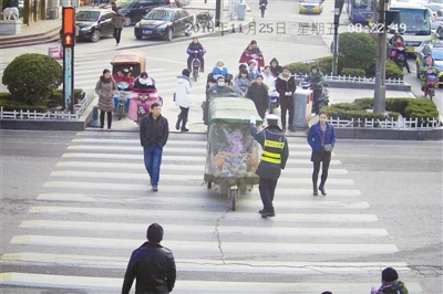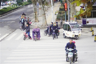 11月23日交通路與人民路交叉口行人闖紅燈。