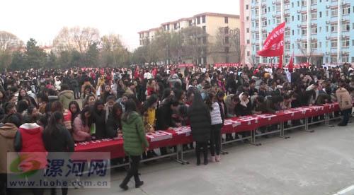 12月16號,由市打傳辦、市文明辦、市綜治辦、市工商局等單位聯合組織的河南省高校“抵制傳銷 凈化校園 共創和諧”大學生萬人簽名活動在漯河醫專舉行,來自我市各高校的大學生參加了活動。