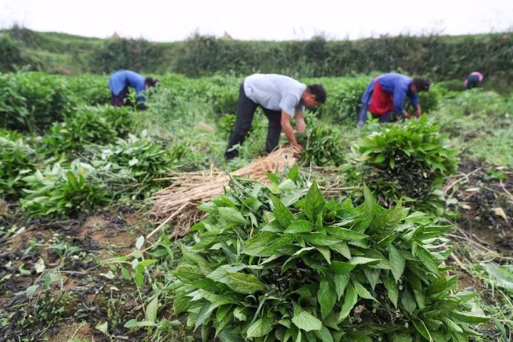 △2017年10月,貴州丹寨縣農業產業扶貧項目——板藍根種植喜獲豐收。(圖自視覺中國)