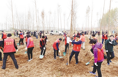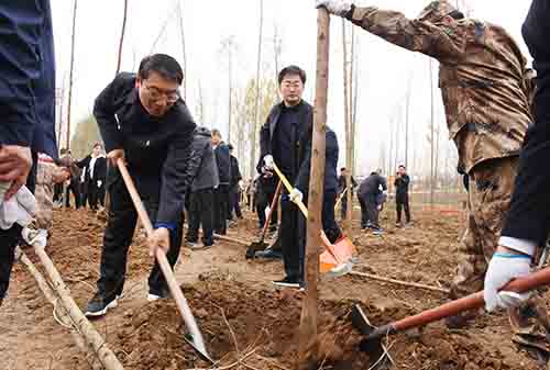 劉尚進、李亦博、李思杰、楊驍、蔣志安、高喜東、周新鶴、張宏進、辛偉、陳平、周學功、栗社臣、余偉、呂娜、徐匯川、閆天常、胡新峰、宗萬志、田冠亭及市中級人民法院院長陳松林、市人民檢察院檢察長陳連東與市直及駐漯各單位主要負責人,市教育、衛(wèi)生、工商、公安、青年志愿者等社會各界代表600余人,來到沙河國家濕地公園合理利用區(qū)內(nèi)參加義務植樹活動。植樹活動現(xiàn)場一派熱火朝天的景象,有的移苗扶苗,有的揮鍬鏟土,有的踩土壓實,有的拎桶澆水,不大一會兒就植下一片新綠。