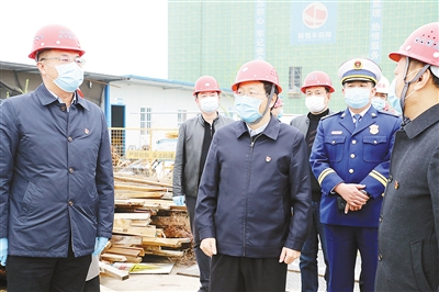 3月9日,市委書記蒿慧杰在市民之家建筑工地檢查安全生產工作。記者 王慶建 攝