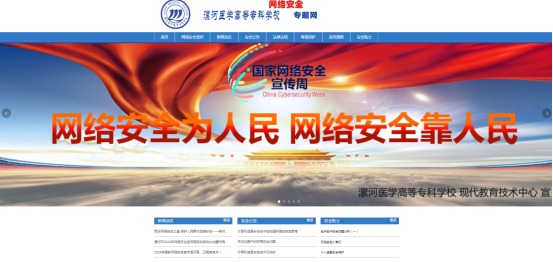 漯河醫(yī)學(xué)高等專科學(xué)校在校園網(wǎng)上開辟網(wǎng)絡(luò)安全宣傳的專欄,提供相關(guān)網(wǎng)絡(luò)安全宣傳的資料供廣大師生下載學(xué)習(xí)使用,微信公眾號發(fā)布網(wǎng)絡(luò)安全周宣傳相關(guān)知識。提升廣大師生網(wǎng)絡(luò)安全意識和防護技能,營造清朗的網(wǎng)絡(luò)環(huán)境,進一步提升師生維護國家網(wǎng)絡(luò)安全的自覺性和主動性。