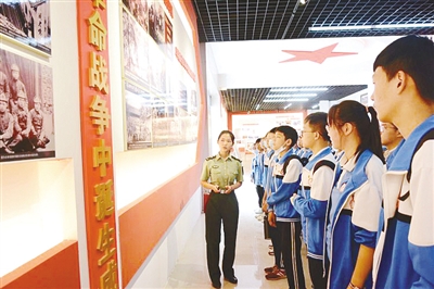 9月19日上午,市外語中學組織部分學生來到漯河市全民國防教育中心參觀學習,激發學生愛國熱情。姜國喜 攝