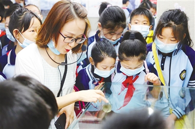 9月17日上午,受降路小學分校組織優秀少先隊員,來到漯河中州抗戰紀念館,緬懷革命先烈。圖為同學們認真聆聽講解員的講解。曹會軍 攝
