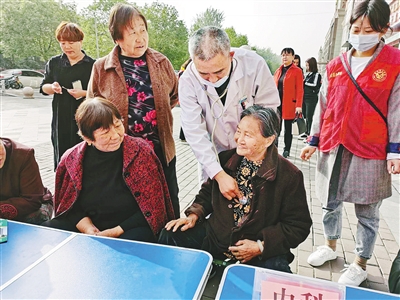 10月23日,沙北街道金山社區聯合郾城區人民醫院在帝景城小區開展重陽節愛心義診活動。