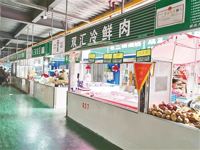 農貿市場整潔有序,各商鋪采用統一門頭。
