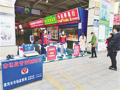 當天上午,在市區遼河路溝張農貿市場,記者看到環境整潔,產品擺放整齊,經營秩序井然,廣播里播放著《漯河市文明行為促進條例》相關內容。