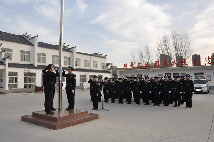 1月10日上午8點30分,分局升警旗儀式準時開始,三名警旗護衛隊員護衛著警旗來到旗桿下,在雄壯的警歌聲中,警旗冉冉升起,60余名民、輔警面向國旗莊嚴敬禮。升旗儀式后,全體人員重溫了入警誓詞。整場儀式主題突出、內涵豐富,進一步弘揚了愛國主義精神,加強了忠誠文化建設,激發了廣大民警輔警的政治榮譽感和工作責任心。