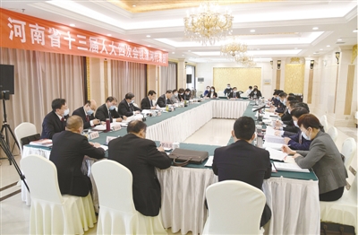 會上,趙丹、張書民、王凱杰、呂飛、王海東、李新偉、曹江濤、王海蛟等代表分別發言,就貫徹新發展理念,慎終如始抓好疫情防控、加快縣域經濟高質量發展、推動產業轉型升級、融入淮河生態經濟帶、豐富中原文化內涵、推進鄉村建設行動、加快城鄉融合發展、提升城市建設品質、打造創新發展高地、推進工業互聯網應用、提升物流城市優勢、建設教育強省、支持綠色食品產業發展等方面提出建議。
