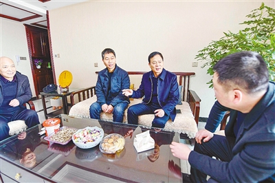 郭長(zhǎng)海(左三)看望村里的老黨員郭保勝。