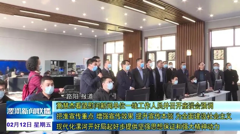 2月10日,市委書記蒿慧杰看望慰問新聞單位一線工作人員并召開座談會,強調要深入學習貫徹習近平總書記關于宣傳工作和新聞輿論工作的重要講話和指示批示精神,把準宣傳重點、堅持正確方向,運用有效手段、增強宣傳效果,提升宣傳本領、建強新聞隊伍,為全面建設社會主義現代化漯河開好局、起好步提供堅強思想保證和強大精神動力。市領導周新鶴、李建濤參加。