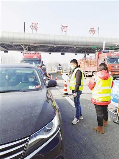 一月十三日,在寧洛高速漯河西出站口,源匯區(qū)交通運(yùn)輸局疫情防控工作人員排查來漯車輛。
