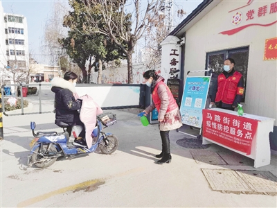 1月13日上午,記者在工務段二號院門口看到4名身著紅馬甲的值勤人員頂著寒風為進入小區的居民測溫、消毒。他們都是該小區居民,年齡均在60歲以上。接到疫情防控的通知后,他們主動參與小區值勤。