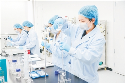 2022年9月,我市主導建設的中原食品實驗室掛牌運營。中原食品實驗室聚焦食品新資源挖掘與功能研究等六大方向,加快新技術、新產品的應用推廣,推動食品企業深度對接“創新大腦”,有效破解了科技與經濟“兩張皮”難題,推動我市科技創新和產業創新加速融合。在中原食品實驗室一樓展示大廳,樂荷酒、酐怡樂和新腸肽等最新研發成果令人目不暇接。