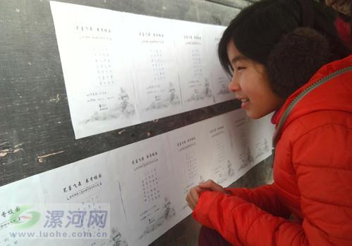 學校從六年級學生書法作品中精選出15幅,張貼在會議室前一個十分簡陋的活動黑板上邊,供全校師生進行觀賞和分享。在課間活動的時候,書法展吸引著學生前來觀看和品賞,給校園增添了迎新年活動的節日氣氛。