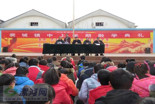 忙碌而又充實的一個學期結束了,為表彰優秀,鼓勵先進,樹立典型,營造濃厚的學習氛圍,進一步調動全體學生學習的主動性和積極性, 2016年1月15日上午9點,漯河市郾城區裴城鎮初級中學散學典禮在該校教學樓前隆重舉行,該校全體師生參加了散學典禮。