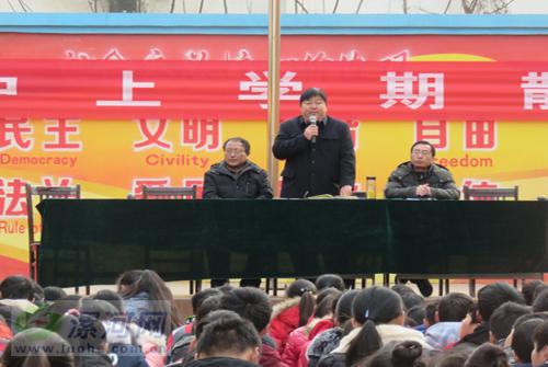 首先,學校領導王俊輝、潘軍安、潘會民宣布優秀生、進步生、優秀學生會干部獲獎名單;接著,該校領導李曉光、李亞峰、徐曉明分別為七八九年級的優秀生、進步生、學生會優秀干部頒發獎狀,并合影留念;最后,該校校長張滿鴻總結了學校本期在教學教育工作中的成績,對同學們在德智體各方面的出色表現表示祝賀,祝師生們過一個快樂而有意義的寒假。
