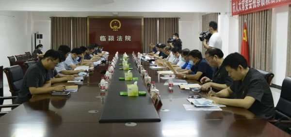 在聽取王黎明院長的工作匯報和與會成員的座談討論后,視察組對臨潁法院刑事審判工作有了清晰的認識,對該院近年來取得的成績予以充分的肯定。趙坤炎副主任表示,臨潁法院在案多人少的情況下,克服重重困難,各項工作在全市法院領先,尤其是多年來連續獲得省級文明單位稱號,刑庭干警多次獲得省市表彰,這些榮譽的取得來之不易。希望臨潁法院全體干警繼續保持昂揚向上的精神狀態,忠誠履職、開拓進取,持續鞏固好刑事審判工作在全市的位次成績,為全市經濟社會發展提供有力司法保障。