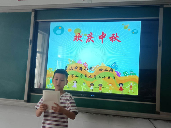 班隊活動分兩部分,第一部分是詩情畫意話中秋。同學們搜集與中秋節相關的資料,并在班內交流,了解中秋節來歷,了解全國各地過中秋習俗,并從中解讀傳統節日在生活中的韻味。接著開展“中華經典誦讀”活動。各班緊緊圍繞中秋佳節,舉行以“月到中秋分外明”為主題的詩歌朗誦比賽,并組織同學們進行與中秋節有關的詩歌創作活動。五一班一首《水調歌頭》讓孩子們感受到“中秋”夜的良辰美景,一個“月圓”已把同學們的心攏在了一起。六二班《中華少年》的朗誦比賽,各小組都憋足了勁,拔優爭先,一副認真勁十足的樣子,