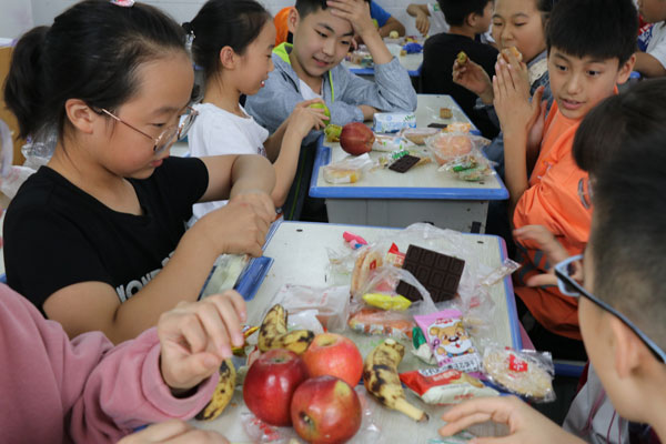 第二部分是“濃情相伴、愛在中秋”中秋節分享會活動。同學們朗誦著歌頌中秋節的古詩、唱著中秋節的歌曲。伴隨著“月餅圓圓甜又香……”的歌聲,分享會開始啦,瞧!每個孩子的臉上都綻放著開心的笑容,孩子們將帶來的月餅、零食整齊地擺放在餐盤里,相互觀賞著,接著紛紛介紹:“我的月餅是圓形的,是草莓味的。”“我的月餅是正方形的,是豆沙味道的。”“我的蘋果可甜了。”“我還帶了火腿腸……”通過小組合作,孩子們把愛心家長自愿提供的月餅,獻給敬愛的老師、親愛的同學們!同學們你喂我一口,我吃你一塊兒,開心極了!孩子們分享著月餅,更分享著快樂……千言萬語,道不盡孩子們的聲聲祝福,傳統文化,洗禮著一顆顆幼小的心靈。整個校園沉浸在濃濃節日氛圍之中。活動在輕松愉悅的氣氛中圓滿落下帷幕,孩子們度過一個意義非凡,情伴中秋的主題活動日,收獲滿滿。