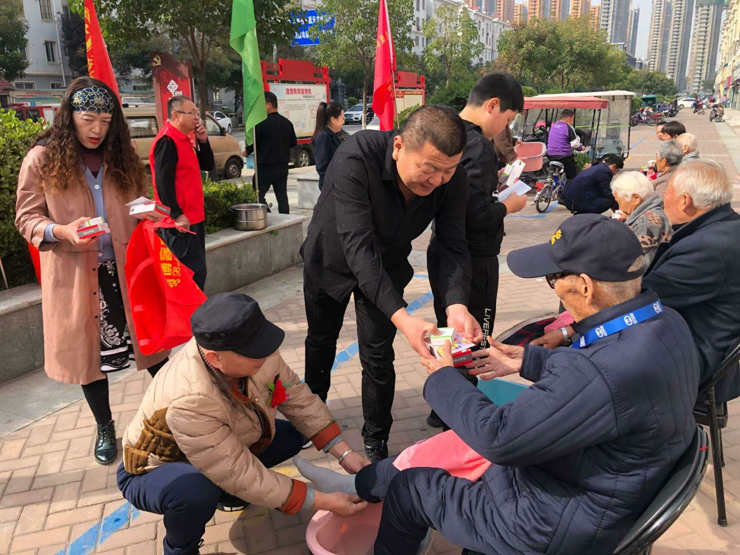 10月25日,翟莊街道黨員為燕山社區老人送聽戲機