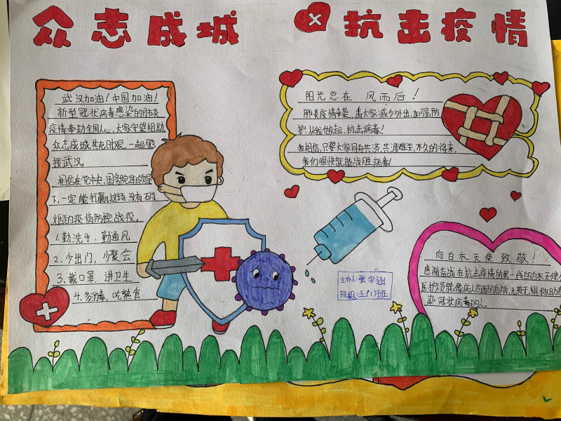 老師們精心準備的“弘揚偉大的抗疫精神”的主題班會的教案、課件;學生收集的感人抗疫小故事;以班級為單位開展了“弘揚偉大的抗疫精神”的主題班會,學生講述的抗疫小故事;學生在國旗下拳拳的莊嚴宣誓;學生鏗鏘感人的抗疫演講比賽;學生內容豐富、栩栩如生的手抄報;全體師生均在活動中談感想,寫反思,無不為中國在世界上樹立一個負責任、有擔當的大國形象,無不為自己是一名中國人而產生深深的自豪感!