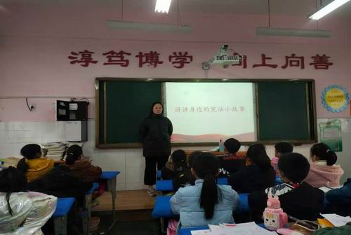 活動三:召開主題班會。孩子們認真學習憲法相關知識,老師細致地解釋了其中各條法律所包含的內容,比如“中華人民共和國的一切權利屬于人民”、“中華人民共和國各民族一律平等”等,平易通俗的語言在同學們腦海中深刻印下了“法律”二字。通過這節班隊課,每個同學都清楚地認識到:作為中國這個大家庭的一員,雖然我們還小,暫時實現不了“報效祖國”這樣的遠大目標,但是我們可以從自身出發,嚴格遵守法律規定,認真學習法律知識,成為一個品行良好、態度端正的好學生、好公民,待到成年后,就可以參與建設祖國,實現“報效祖國”的目標,實現自己的人生價值。