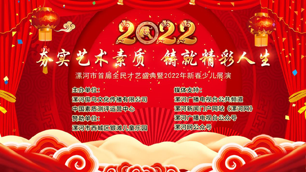 2022年漯河地區(qū)新春少兒才藝展演優(yōu)秀節(jié)目開始征集了!!!這是孩子藝術(shù)人生的起跑線,是孩子藝術(shù)夢(mèng)想的搖籃,是孩子展現(xiàn)自我人生,成就未來(lái)的舞臺(tái)!快來(lái)報(bào)名吧~~