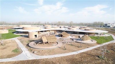 5月18日,記者來到賈湖遺址博物館。站在館外廣場上,只見一個個別致的圓形建筑錯落有致,加上仿古草房、仙鶴群舞等景觀,博物館給人的印象是仿9000年前的賈湖先民聚落。