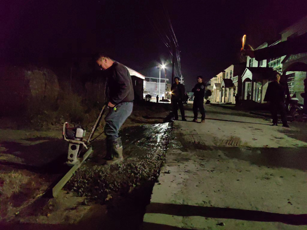 12月7日當天,雖然天氣寒冷,雖然北風呼嘯,雖然夜色已深,但張三崗村村干部抓住晴好天氣的有利時機,組織黨員、群眾對村委會附近廣場和部分未硬化路肩進行混凝土澆筑作業。平整路基,修建廣場,鋪設路面,各項工作有序推進。