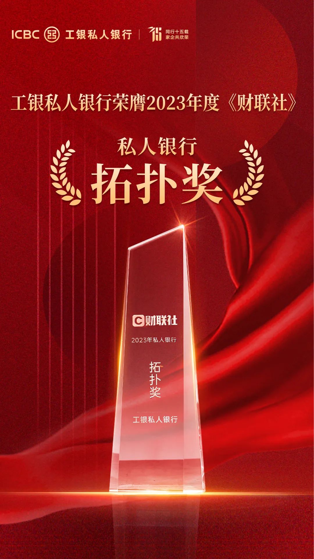 12月15日,在財聯(lián)社2023年度金融業(yè)年會頒獎典禮上,工銀私人銀行憑借卓越的綜合創(chuàng)新能力榮膺2023年私人銀行“拓撲獎”。