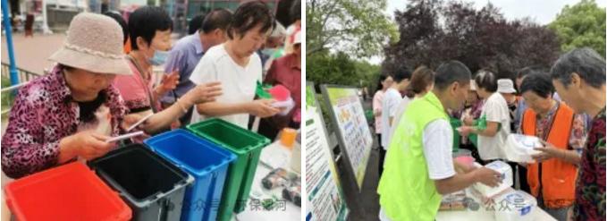 活動現場設置宣傳展板、講解臺,志愿者發放環保宣傳頁、環保購物袋、環保圍裙等,向群眾講解生態環境保護、生活垃圾分類、綠色低碳生活等知識。同時,現場開展了垃圾分類投放活動,投放正確的可獲得環保餐盒、環保垃圾桶等獎品。