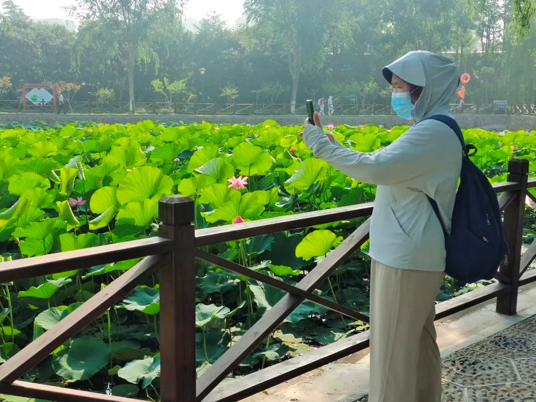 靜待盛綻:共盼千朵荷香滿園。此刻的公園荷塘,雖暫是"小荷才露尖尖角"的嬌羞模樣,卻已蘊藏著盛夏"接天蓮葉無窮碧"的勃勃生機。往年,20余畝荷葉美景讓人流連忘返:碧波之上,蓮葉如蓋,層層疊疊鋪向遠方,織就一湖翠色錦緞;千朵荷花競相綻放,粉白嬌妍,亭亭玉立,恰似仙子凌波;微風過處,荷香浮動,彌漫了整個湖畔。身著漢服的姑娘們,手執團扇,巧笑嫣然,在荷塘邊、曲橋上留下衣袂飄飄的倩影,人與花相映成趣。環湖步道上,游人如織,攝影快門聲此起彼伏。更有孩童們指著盛開的荷花興奮不已,老人們則在樹蔭下搖著扇子,笑看這滿塘的熱鬧與生機。待今年粉白花瓣全然舒展,六片花盞托著金盤玉蕊,醉人的荷香將再次漫溢環湖步道。