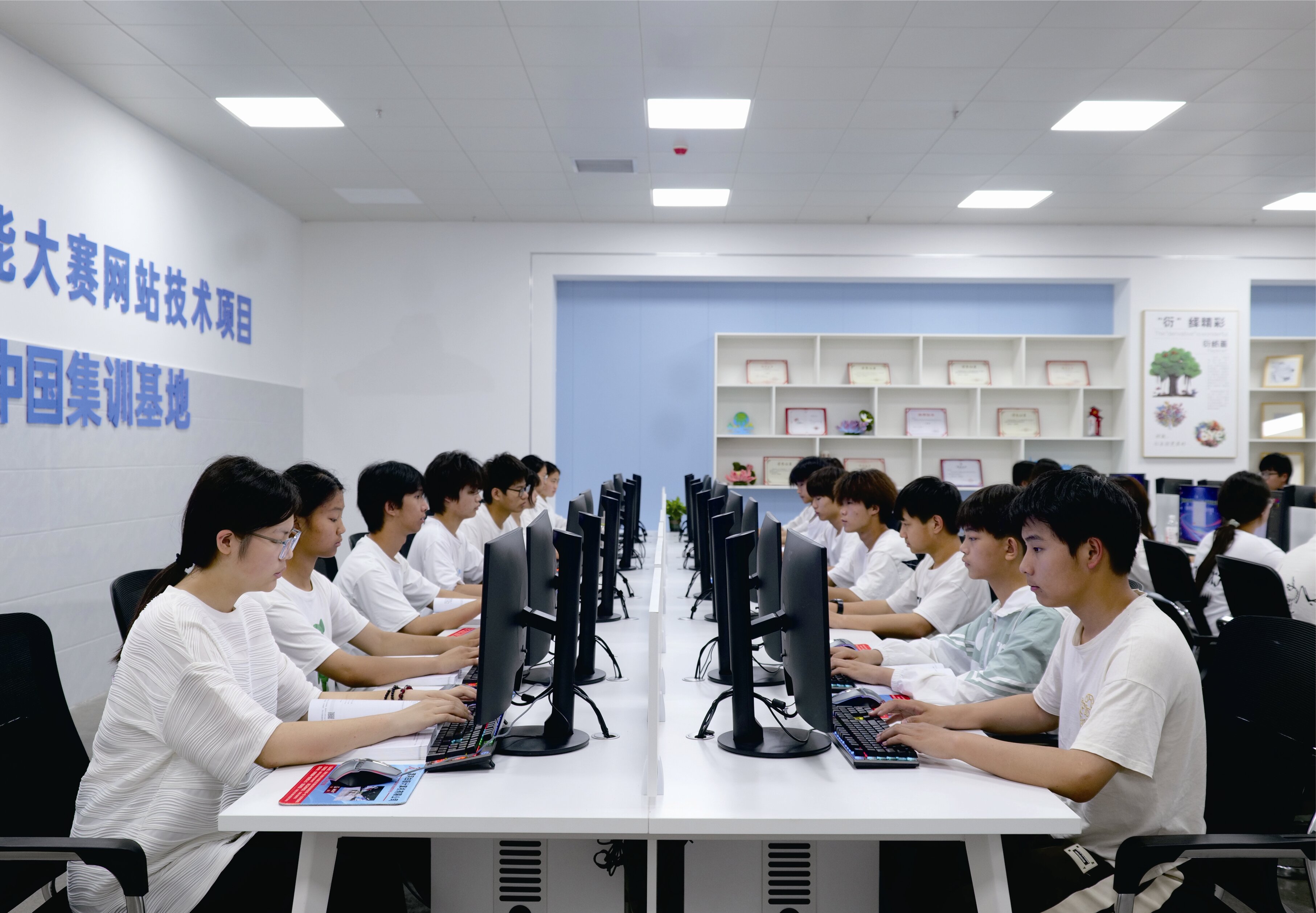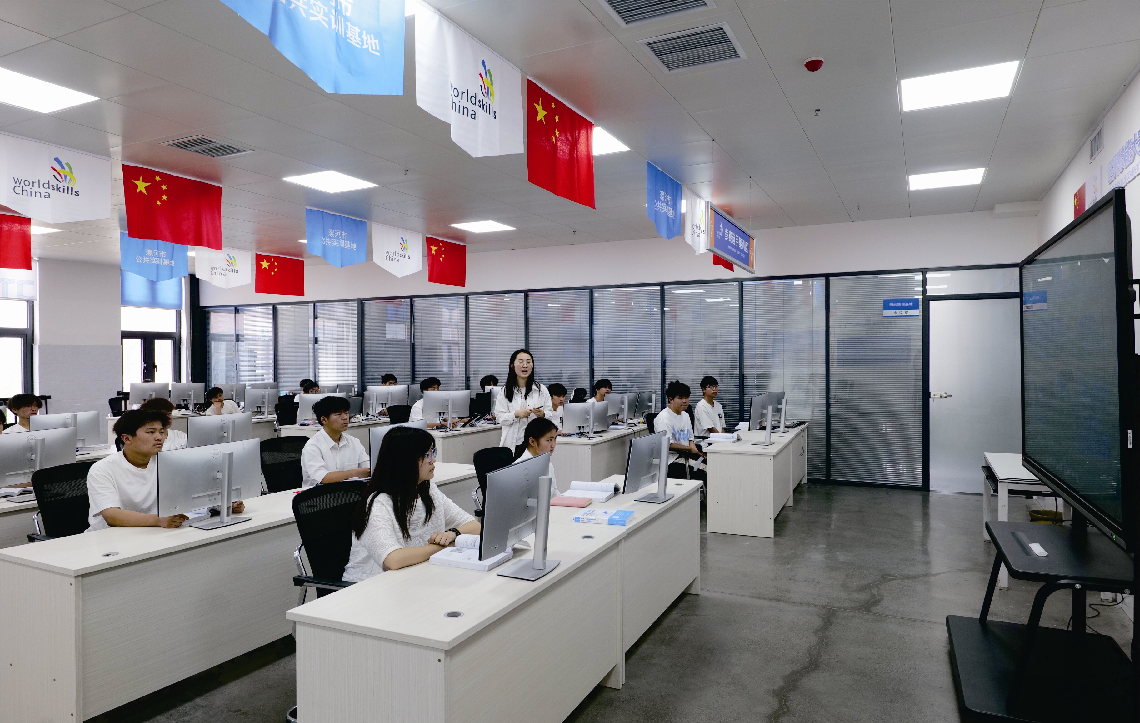 建有網站技術項目中國集訓基地、平面設計技術項目河南省集訓基地、數字媒體技術應用實訓室、電子商務實訓室、電商直播間、視頻剪輯室、會計實訓室等專業實訓室,為教學、培訓、鑒定提供了良好的硬件環境。